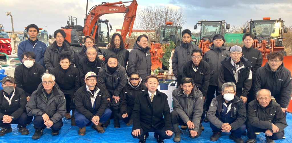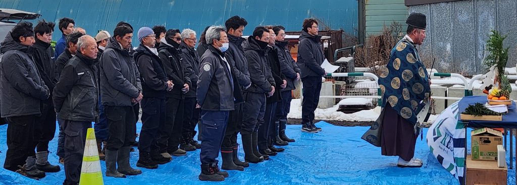 お祓いでは池田社長をはじめ、冬季除排雪作業にかかわる全スタッフが神様への敬意と祈りを込めて玉串奉奠をさせていただきました。