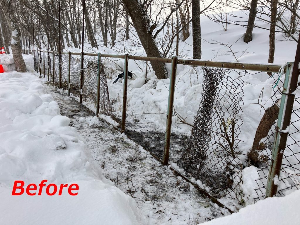 2月1日 岸本組で施工中の「ポントネ川大規模特定河川改修工事2工区」 「岩見沢大願地区 大願19・20区区画整理工事」にて岩見沢市立日の出小学校様の 敷地内にありますフェンスの修理を地域貢献として行いました。
